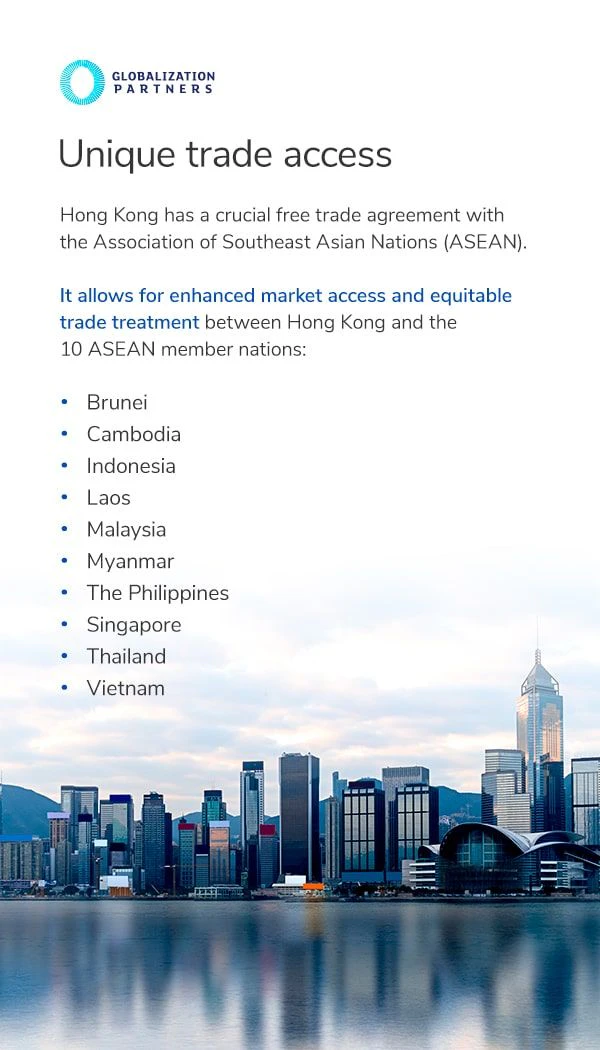 Hong Kong provides preferential trade access for companies doing business from within its borders.