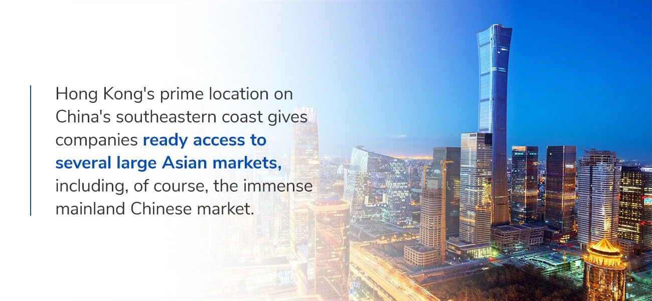 Hong Kong’s prime location on China’s southeastern coast gives companies ready access to several large Asian markets, including, of course, the immense mainland Chinese market. Business travelers can reach most of China’s major cities within a single day, and Beijing travel is especially convenient via the Beijing-Hong Kong high-speed trains.