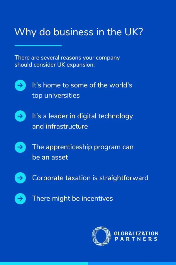 Though the UK’s sought-after labor market and regional programs create the perfect environment for international expansion, the process can be time consuming, expensive, and complex for several reasons.