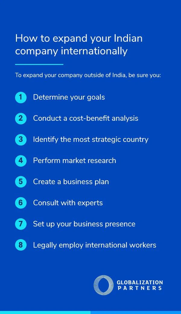 Growing your company outside of India can be a strategic move, but it’s not something to do spontaneously. Any global growth should involve time spent on strategizing and careful planning. To expand your company outside of India, be sure you: