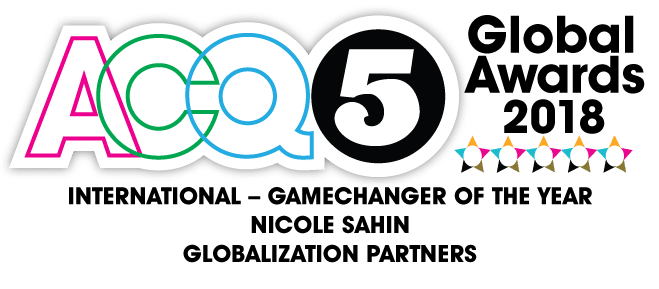 BOSTON – February 5, 2019 – Globalization Partners, a Global Expansion Platform renowned for its Global Employer of Record that helps companies quickly expand into more than 170 countries without the hassle of setting up overseas branch offices, today announced its founder and CEO Nicole Sahin has been named International Gamechanger of the Year by the 2018 ACQ5 Global Awards. The news, which highlights the continued success of Globalization Partners as part of Ms. Sahin’s individual accomplishments, comes on the heels of her winning a Stevie® International Business Award for Woman of the Year.